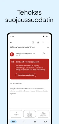 Gmail on modernin viestinnän ytimessä, tarjoten sinulle älykkään ja turvallisen alustan sähköpostien hallintaan. Tämä Googlen kehittämä palvelu asettaa tietoturvan etusijalle suojaten postilaatikkosi tehokkaasti. Se estää ennakoivasti yli 99,9 % roskapostista, tietojenkalasteluyrityksistä ja haitallisista linkeistä jo ennen kuin ne saapuvat sinne. Unohda huolet ja keskity olennaiseen; Gmail huolehtii digitaalisen kommunikaatiosi puhtaudesta ja turvallisuudesta. Sen lisäksi sovellus virtaviivaistaa arkeasi nopeilla toiminnoilla, kuten lähetettyjen viestien peruuttamisella ja älykkäillä vastausvaihtoehdoilla, jotka säästävät arvokasta aikaasi.