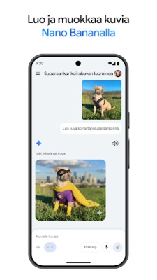 Gemini muuntaa mielikuvituksen todellisuudeksi vaivattomasti. Hyödyntämällä Canvas-toimintoa voit muuntaa yksinkertaiset kehotteet toimiviksi prototyypeiksi sovelluksiksi, peleiksi, verkkosivustoiksi tai jopa infografiikoiksi. Luovuus ei tunne rajoja, kun voit luoda upeita kuvia muutamalla sanalla tai muokata tiedostoista podcasteja kuunneltavaksi milloin ja missä vain. Opiskelu tehostuu kyselyjen, interaktiivisten korttien ja todellisten esimerkkien avulla, ja matkasuunnittelu sujuu nopeammin kuin koskaan. Gemini yhdistyy saumattomasti myös tuttuihin Google-sovelluksiin, kuten Hakuun, YouTubeen, Google Mapsiin ja Gmailiin, tuoden kaikki työkalusi yhteen älykkäästi. Kokeile myös Nano Bananaa, uraauurtavaa kuvatyökalua, joka hyödyntää Gemini 2.5 Flashin voimaa.