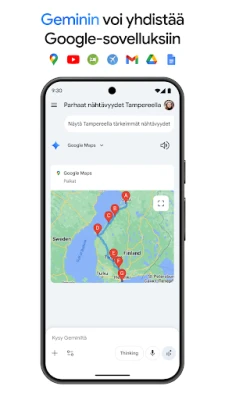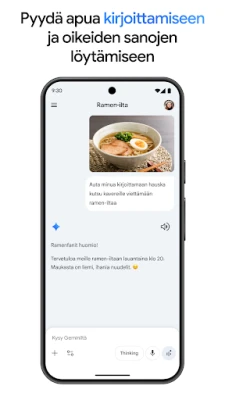 Google Gemini on Googlen tekoälyavustaja, joka tehostaa luovuutta ja tuottavuutta. Ideoi Gemini Liven avulla, luo prototyyppejä Canvasilla ja integroi Google-palveluihin. Hyödynnä älykkäämpään opiskeluun ja monipuoliseen tiedonhakuun.