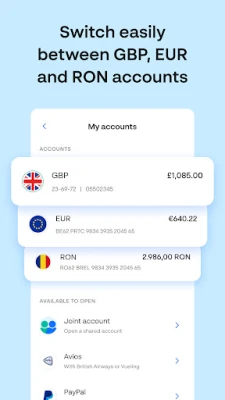 Monese mullistaa tapasi hallita rahaa tarjoten saumattoman kokemuksen, joka mukautuu elämäntyyliisi. Olipa tarpeesi sitten GBP-, EUR- tai RON-tili, Monese antaa sinulle mahdollisuuden hoitaa talouttasi suoraan puhelimestasi. Nauti vapaudesta elää, työskennellä, matkustaa ja menestyä missä tahansa päin maailmaa, sillä Monese tekee monivaluutta-asioinnista yksinkertaista ja vaivatonta. Tarjoamme jopa räätälöityjä ratkaisuja yrityksille, mikä tekee Monesesta ihanteellisen kumppanin sekä yksityishenkilöille että liiketoiminnalle. Liity yli kahden miljoonan käyttäjän joukkoon ja koe moderni taloudenhallinta ilman rajoja.