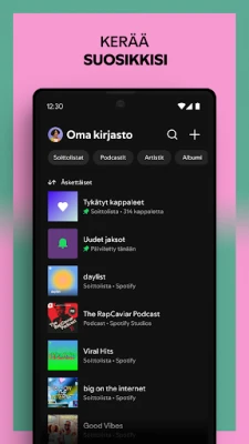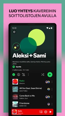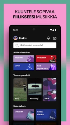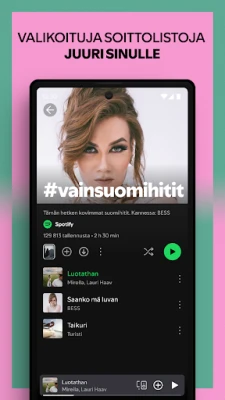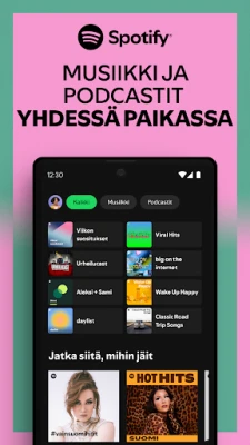 Spotify kutsuu sinut sukeltamaan äänen valtamereen, jossa musiikki ja podcastit odottavat löytäjäänsä. Löydä suosikkiartistisi ja -albumisi, kokoa henkilökohtaisia soittolistoja joka hetkeen tai anna Spotify:n yllättää sinut. Tutki asiantuntijoiden kokoamia teemakohtaisia soittolistoja ja nauti ainutlaatuisista, henkilökohtaisista suosituksista, jotka on räätälöity juuri sinun makuusi. Maailma täynnä musiikillisia löytöjä odottaa sinua.