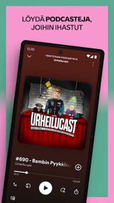 Musiikin lisäksi Spotify on koti tuhansille podcasteille, joukossa ainutlaatuisia ohjelmia, joita et muualta löydä. Koe vapauden tunne mobiililaitteellasi, kun sukellat valitsemiesi artistien ja albumien pariin satunnaistoistotilassa. Tabletillasi voit nauttia jokaisesta sävelestä omilla ehdoillasi, kuunnellen juuri sen kappaleen, jonka haluat, juuri silloin kun haluat, ja tutustuen uusiin äänimaisemiin vaivattomasti.