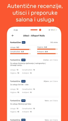 SrediMe antaa sinulle mahdollisuuden tehdä tietoon perustuvia päätöksiä vertailemalla hintoja, hoitojen kestoja sekä muiden käyttäjien aitoja arvosteluja ja luokituksia. Jokainen salonki on esitelty selkeiden valokuvien kera, joten voit kurkistaa sisään ja saada käsityksen tunnelmasta ennen varauksen tekemistä. Varauksesi sujuu luottavaisin mielin, ja voit valita juuri sen, mikä sopii parhaiten sinun tarpeisiisi ja aikatauluusi. Kaikki SrediMe-palvelun kautta jaetut salonkiarvostelut ovat 100 % todennettuja ja tulevat ainoastaan käyttäjiltä, jotka ovat varanneet palvelun.