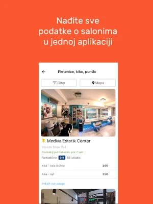 SrediMe on innovatiivinen sovellus, joka tekee täydellisten kauneushoitoloiden, kampaamoiden ja SPA-palveluiden löytämisestä sekä ajanvaraamisesta helpompaa ja miellyttävämpää. Varaa aikoja suoraan luotettavasti ja laajalla valikoimalla, juuri silloin kun sinulle sopii. Nauti kauneudenhoitohetkien vaivattomasta järjestämisestä Serbiassa, Bosnia ja Hertsegovinassa, Montenegrossa ja Kroatiassa.