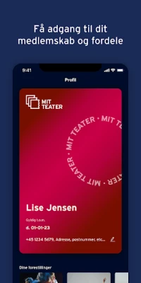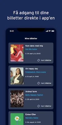 Kaikki hankkimasi liput ovat kätevästi koottuna yhteen paikkaan Teaterbilletter-sovelluksessa, mikä mahdollistaa niiden helpon tarkastelun ja esittämisen suoraan laitteestasi saapuessasi teatteriin. Unohda hukkaan menneet etsiskelyt – kaikki on sormenpäilläsi. Hyödynnä myös Mit Teater -jäsenkorttiasi, joka löytyy vaivattomasti sovelluksen sisällöstä. Näytä sitä tietyissä teattereissa ja nauti jäseneduista ja alennuksista. Merkitse suosikkiesityksesi sydän-ikonilla ja saat ensimmäisten joukossa tiedon tulevista ensi-illoista, lisänäytöksistä ja muista jännittävistä uutisista, varmistaen, ettet jää paitsi mistään.