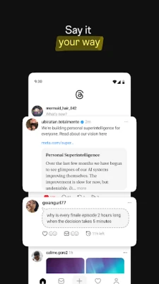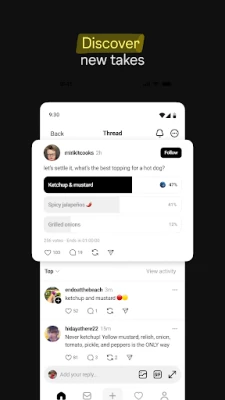 Sukella syvemmälle keskusteluihin ja reagoi kommentteihin, huumoriin ja oivalluksiin tuttujen ja rakastettujen sisällöntuottajien parissa. Löydä oma yhteisösi ja luo siteitä ihmisiin, jotka jakavat intohimosi, olipa kyse sitten television suosituksista tai uraneuvoista – Threads tarjoaa paikan, josta löydät vastauksia ja opit uutta joukkoistetusta tiedosta ja alan asiantuntijoilta. Pysy ajan tasalla uusimmista trendeistä ja tapahtumista, kuten musiikkiuutuuksista, elokuvaensi-illoista tai urheilun huippuhetkistä. Saat ilmoituksia, kun suosikkiprofiilisi käynnistävät uuden ketjun, etkä koskaan jää paitsi tärkeistä hetkistä.